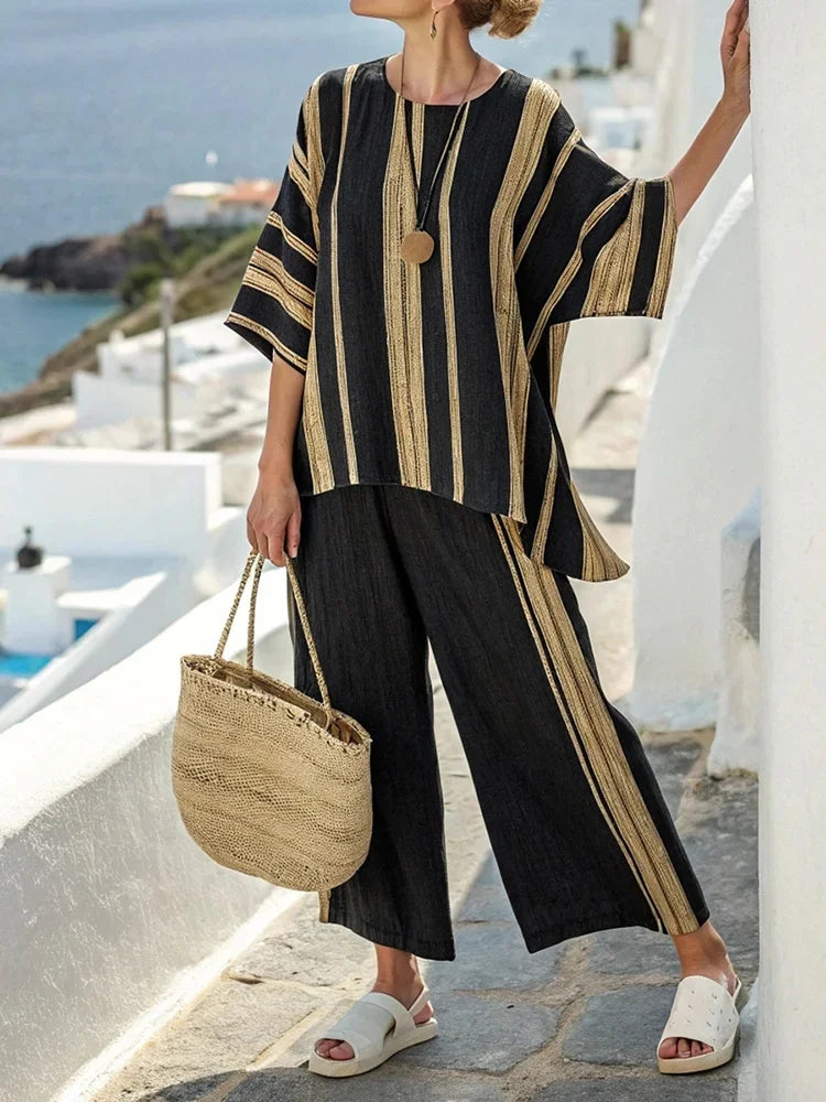 Style: The top is designed with a loose version, which shows a lazy and casual attitude when worn; the matching wide-leg pants have smooth lines, which are convenient for activities and can visually lengthen the leg proportions. The whole set of clothing is full of the relaxed atmosphere of leisure vacation, comfortable and fashionable.
