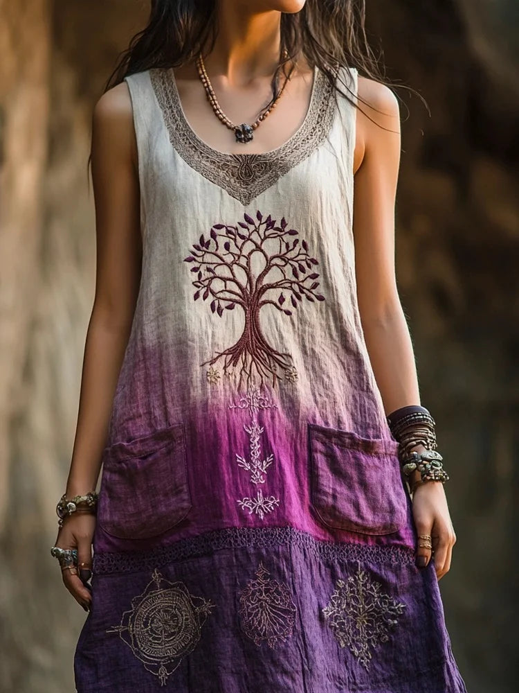 Viking Tree Of Life Embroidered Women's Tank Dress With Pockets