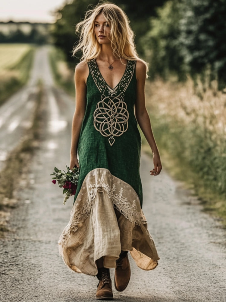 Vintage Viking Tribal Celtic Knot Art Linen Tank Dress