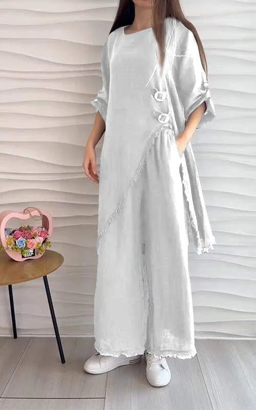 Cotton and Linen Casual Round Neck Two-piece Suit